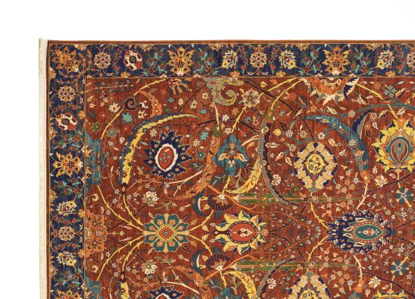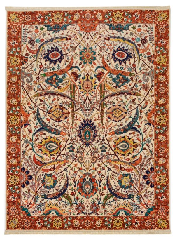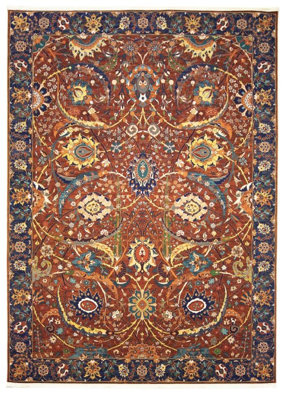 تاثیر نقش و نگارها در تصویرگری فرش، بیانگر سنت فرش بافی پیشرفته است. نقش و نگارهای فرش طرح صفوی بر میگردد به زمان صفویه و جزو پرطرفدار ترین فرشهای ایرانی است. این فرش زیبا از ۳۳۰۰ تراکم، ۷۰۰ شانه و الیاف پلی اوژن تشکیل شده است. فرش صفوی بدلیل طرح افشان و نقش های متنوعی که دارد فضای منزل شما را بسیار شاد و دلباز تر نشان میدهد همچنین استفاده از قاب پر رنگ تر دور این طرح زیبایی آن را دوچندان میکند. الیاف استفاده شده در این فرش بسیار با کیفیت و مقاوم است همچنین این فرش هیت ست شده و پرز نمیدهد. فرش طرح صفوی مخصوص کسانی است که اصالت فرش برایشان بسیار مهم است.
