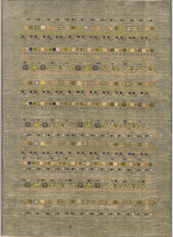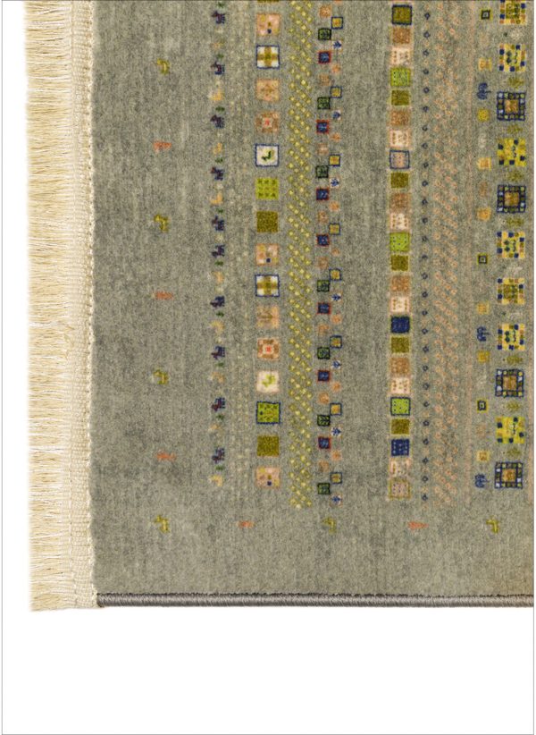 این فرش از ۳۳۰۰ تراکم، ۷۰۰ شانه و الیاف پلی اوژن تشکیل شده است. در طراحی این نوع طرح خلاقیت منحصر به فردی به کار برده شده است، به همین دلیل یکی از طرحهای بسیار پرطرفدار گبه باغچه است.